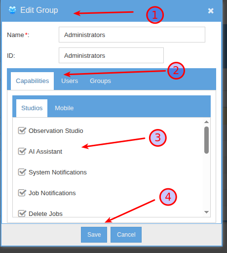 Only Org owners will have the ability to see the AI Assistant for existing organizations. Grant AI Assistant capability via Groups: Admin - Security - User and Groups Edit a group and enable it there: ![]() |