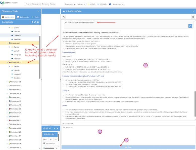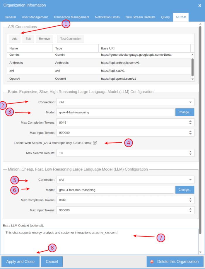 I never thought I'd see this in my lifetime, but I think we've achieved the level of prompt/answer of the Start Trek computer. !!!This is scary good!!!. Go pay for some LLM API credits and get an API key. The cost isn't much. Some of them have a free time period. You need the key to enable the assistant in GS. This just went live on Sunday and customers are blown away. A video is coming but here's how to get up and running: Organization-Admin-Organization-General Settings-AI Chat ![]() 1. Goto an LLM API page (one of the four below). I highly highly recommend xAI/Grok . I played with all four during development and it is the best fit for GS today. It was just released last month, it supports a high token count, low or no rate throttling, it's fast, and it has good reasoning. Some of the other models might have better reasoning today, but they fall behind in the other features. Go to the API Key page and pay for $20 in credits. Click the Add button and add their API key there. 2. GS will use two AIs as it processes your prompt. One for heavy reasoning and one for fast low reasoning (Brain/Minion). I highly recommend what I have in this screenshot, Grok-4 fast. Select your API you added above. 3. Select from the available models. If you're not sure which one to select, open your favorite AI in a browser (like Google Gemini) and explain what you're doing, what you're using it for and to list all options. Tell it you need a high token count. 4. Some LLM AI APIs support searching the web during a prompt. They charge a little extra for that. It's not much. I recommend enabling search. 5 & 6. Setup the cheap fast Minion 7. You can give the AI a little more context or instructions. It's a good place to explain a little bit about your organization and users. 8. Apply your changes. They will be validated and tested. Refresh your browser to see the AI Assistant This is a quick example that demonstrates the reasoning the AI has. It's capabilities far exceed this little example. ![]() The GS AI Assistant has access to everything the calling user has rights to including: * GS online docs * Component, Dashboard, Tools wildcard searches * Component, Dashboard, Tools object JSON definition retrieval * GS SQL Execution. INSERT is blocked for now. (If your pricing plan supports this) This is the real powerhouse and gives it fast intelligent access to all of your 100's of thousands of streams. Added new GSQL tables so that the AI can analyze ongoing activity and issures.: - ActiveEvents - User, System, Job notification tables. - It can do SQL joins to investigate issues/components across all tables. * An advanced Math library * Derived Stream Diagnostics * It's told what the user has selected in the left studio trees * It is told the user's timezone * It's read-only right now. This is version one beta. It's insane and I already have a lot of ideas on where to take it. Clue: it doesn't have to be read-only and it can interact with the UI and it could create components/streams, populate them and run simulations. AI and GS were made for each other. The component and stream metadata (their definitions) give AI enough information for excellent inference (as seen in the above example). The volume of data that GS holds and the speed it can retrieve (especially with GS SQL) makes the AI drool. Enjoy! |